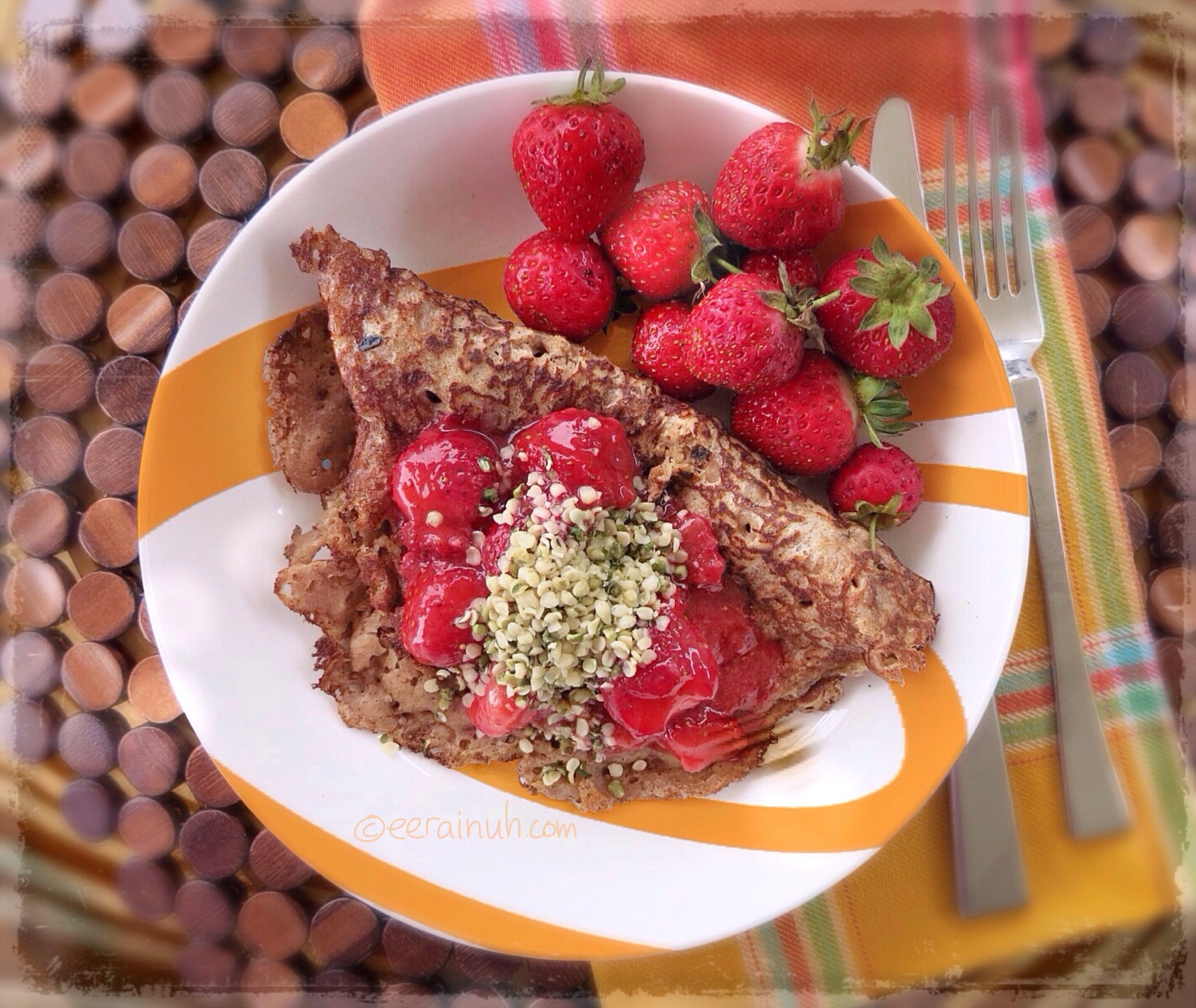 - Aniseed Spelt Pancakes w Chunky Strawberry Mash