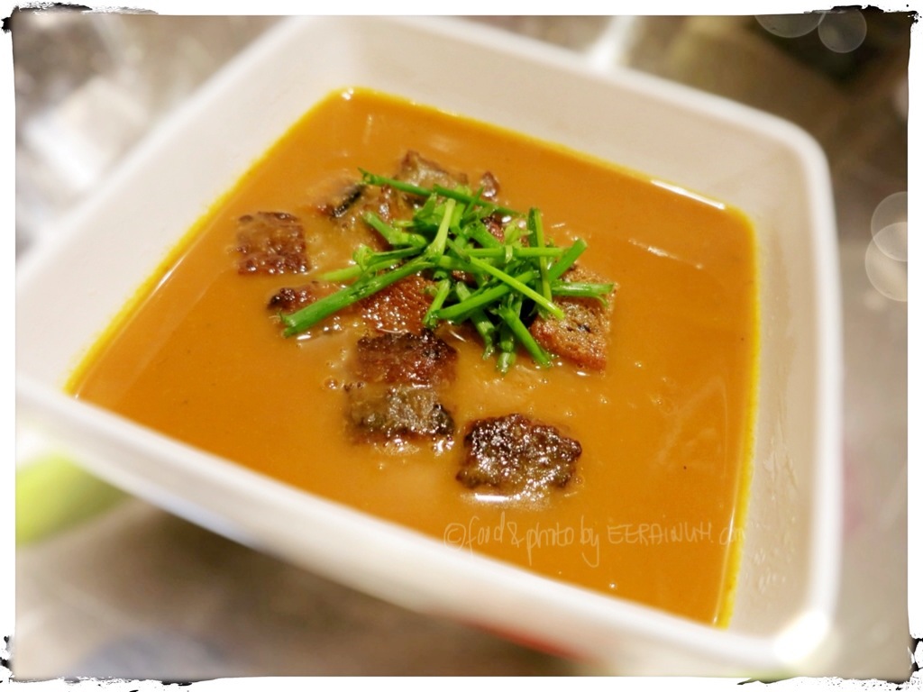 - Kaffir & Ginger Carrot Soup w Curry Cashew Cream & Lime