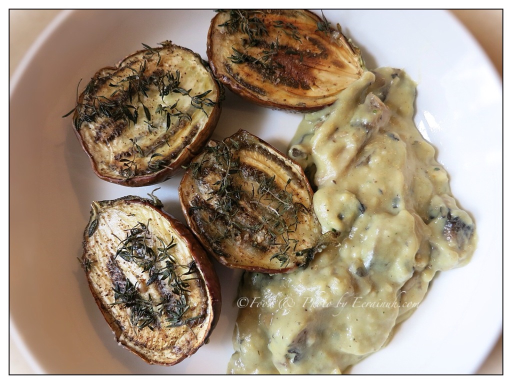 - Baby Eggplant w Thyme & Mushroom Ragoût