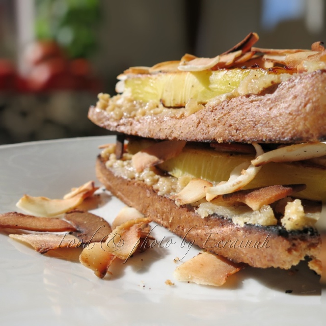 - Pineapple Ginger Pancake w Sweet Peanut Sauce, Coconut & Mint