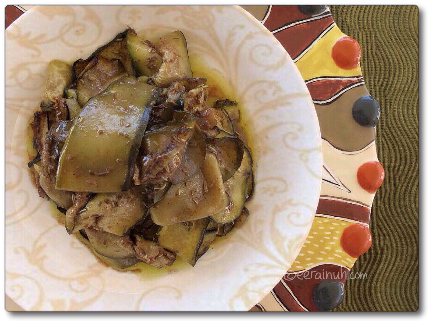 - Lemony Eggplant w Artichoke & Kale Sauce on Adzuki Bean Spaghetti