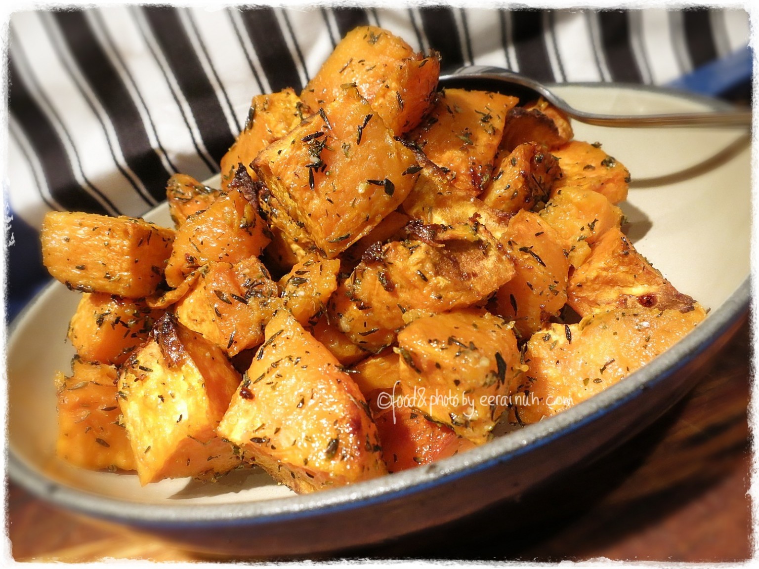 - Roasted Sweet Potato w Thyme, Garlic & Sesame Oil