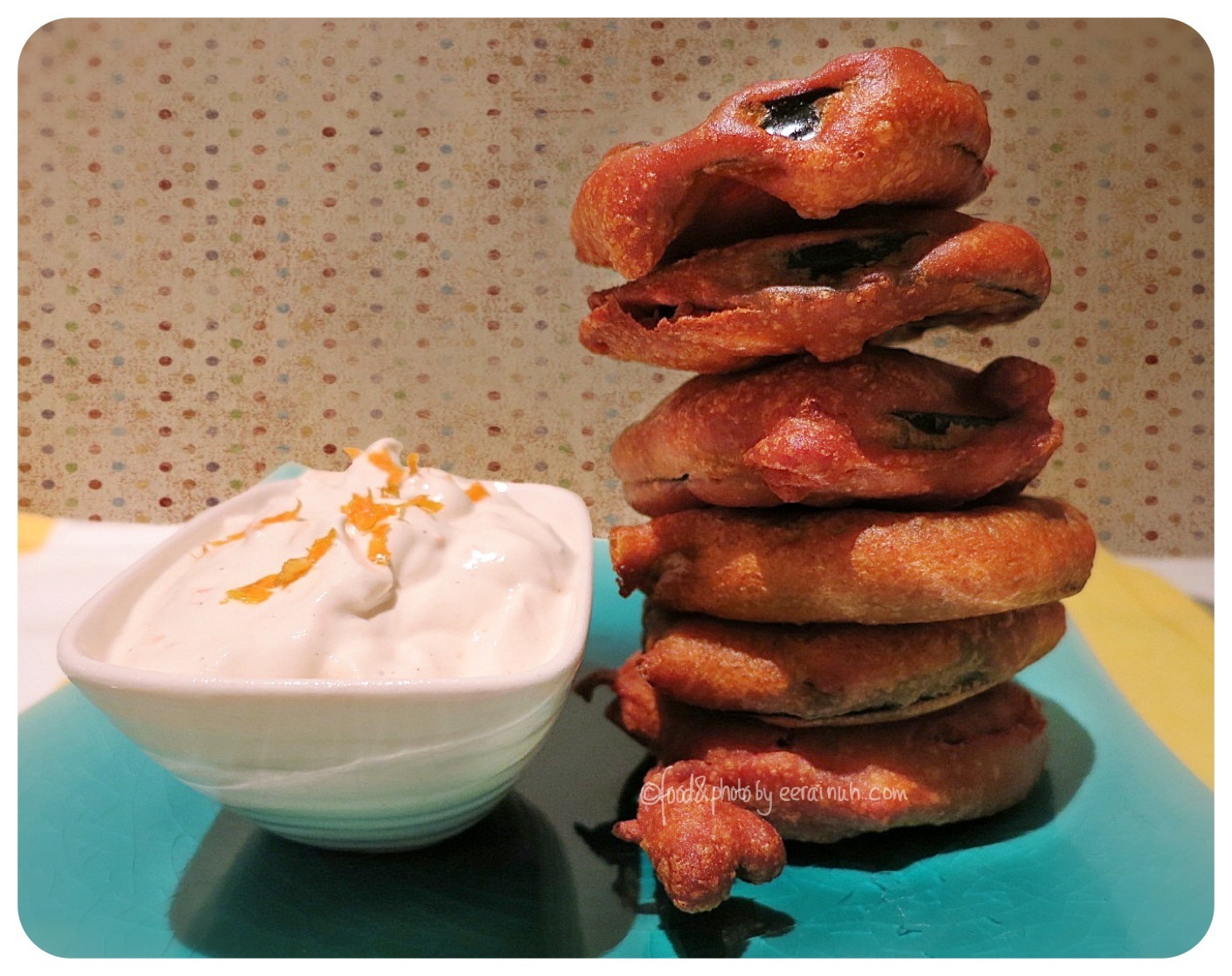 - Spicy Chickpea Eggplant Fritters w Orange Dip