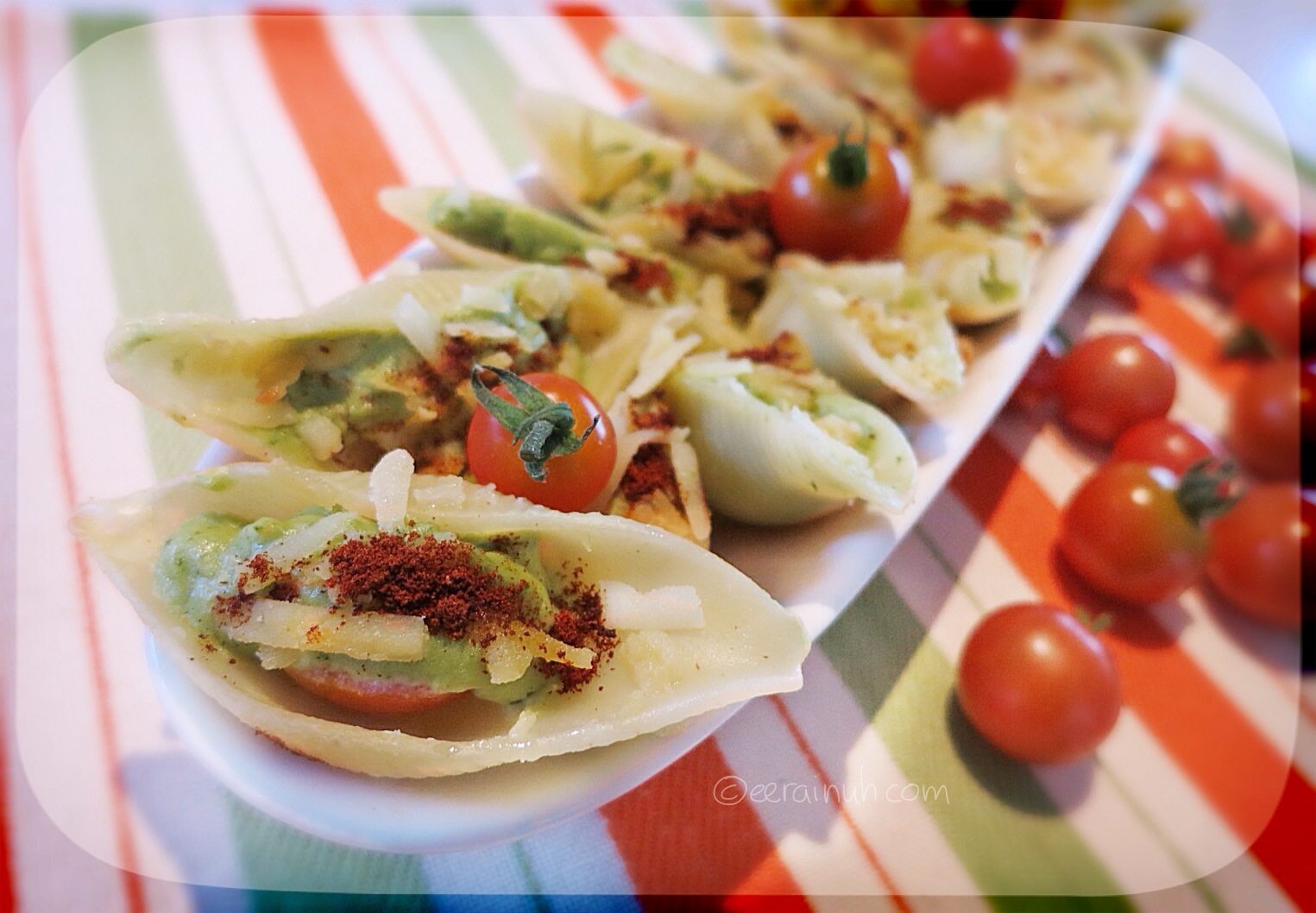 - Stuffed Conchiglioni w Cherry Tomato, Basil Cream & Smoked Paprika